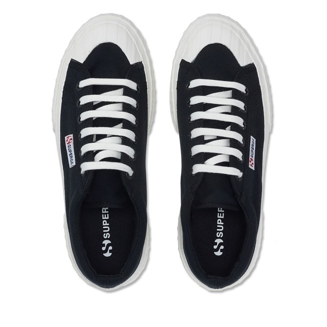 Home| Mulheres| 2631| Plataforma Listrada Superga 2631 Preto E Branco Avorio
