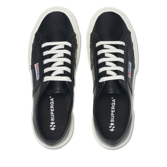 Superga 2750 Couro Vegano Preto E Branco Avorio
