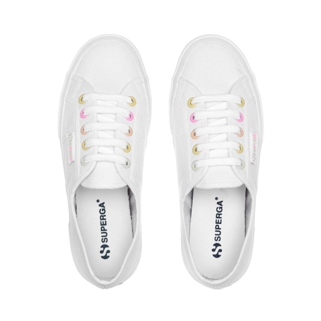 nosso ícone Clássico 2750 é Minimamente Atualizado Com Detalhes De Arco-íris Pastel. Ilhós Inspirados Em Doces Multicoloridos E Uma Bandeira Jacquared Arco-íris. Um Cabedal De Lona De Algodão Sem Forro Que é Extra Forte E Respirável.