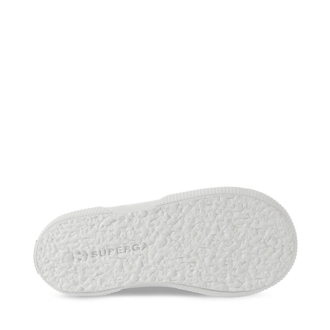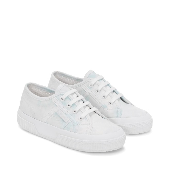 o Superga 2750 Para Criança: Cabedal Em Algodão Estampado Efeito Nuvens, Forro Em Algodão E Solado Em Borracha Natural Vulcanizada.