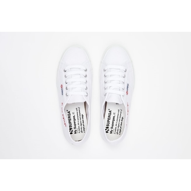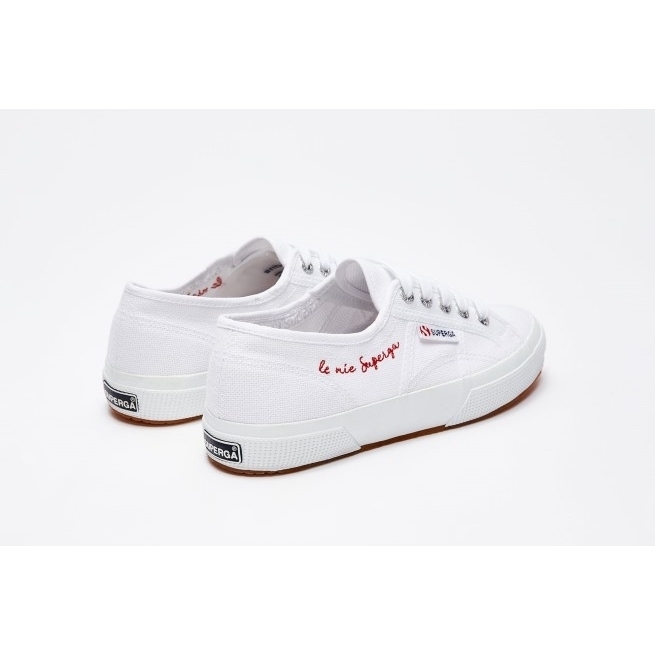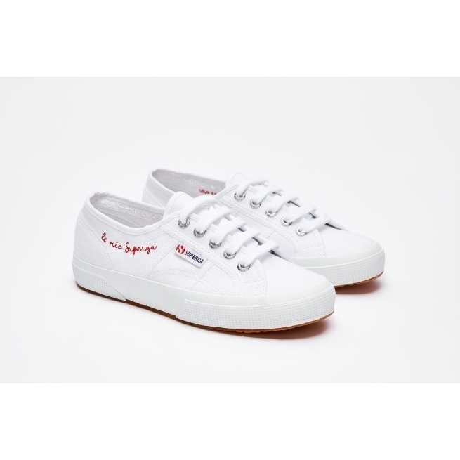 nosso Clássico ícone 2750 Com Uma Atualização Mínima, Perfeito Para Dizer "meu Superga". Parte Superior Em Nossa Lona De Algodão Premium Com Um Pequeno Bordado Vermelho "le Mie Superga" Na Parte Externa.