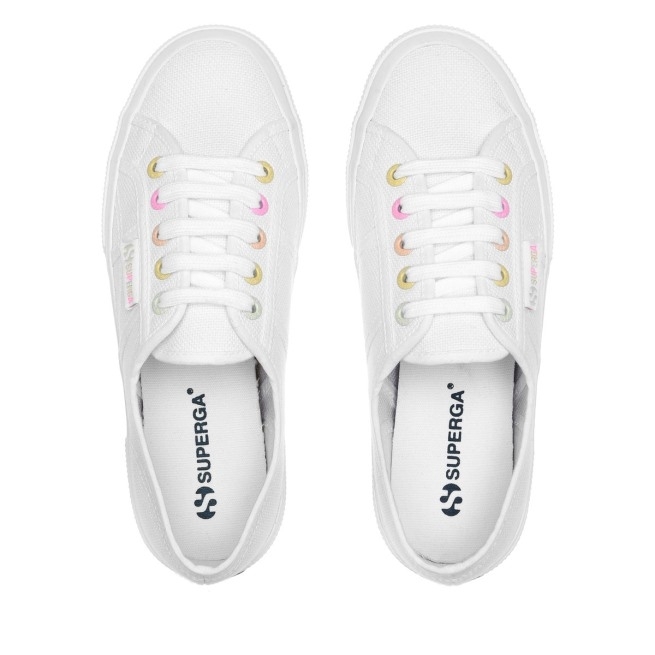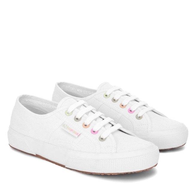 nosso Clássico Sapato Superga 2750 Cotu é O Tênis Preferido Da Moda. Com Um Cabedal De Puro Algodão Extra Forte E Totalmente Respirável, Nosso Tênis De Forma Atemporal é Um Tênis De Lona Leve E Simples Com Nossa Sola De Borracha Vulcanizada. Desta Vez Com Ilhós E Etiquetas Coloridas Do Arco-íris.