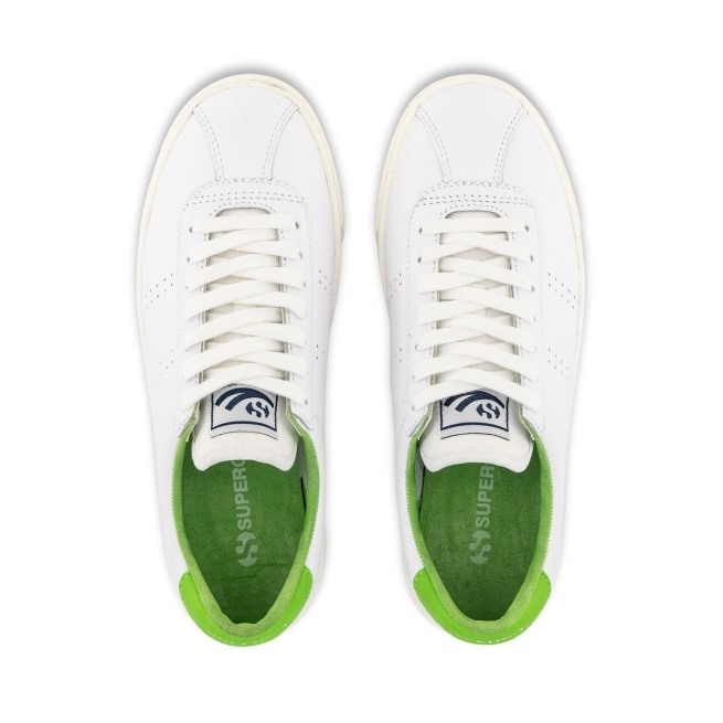 Superga 2843 Club S Comfort Couro Branco Verde Flash