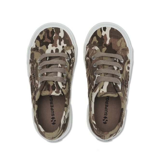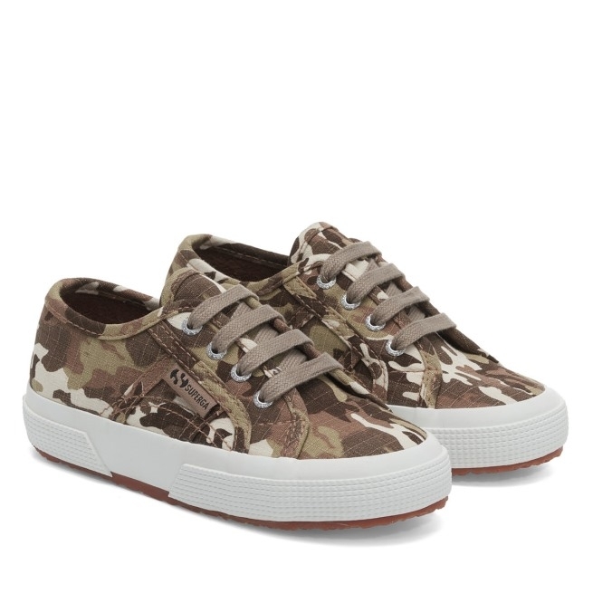 Superga 2750 Kids Camo Ripstop Bege Raw Camuflagem