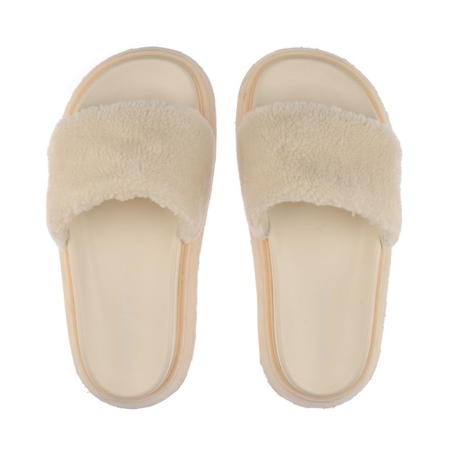 superga Slides Levados às Alturas Em Um Slide De Plataforma. Apresentando Uma Plataforma De Sola De 3 Cm Que Se Afunila Para Fora Para Maior Controle Do Solo. Na Tendência, A Parte Superior é Em Um Velo De Pelúcia Macio E Luxuoso - Ideal Para O Conforto Da Casa Ou Passeios De Luxo. Marca Com Um Logotipo Superga De Arquivo Na Parte Superior Externa Em Eva Impresso.
